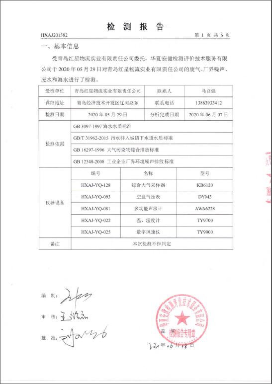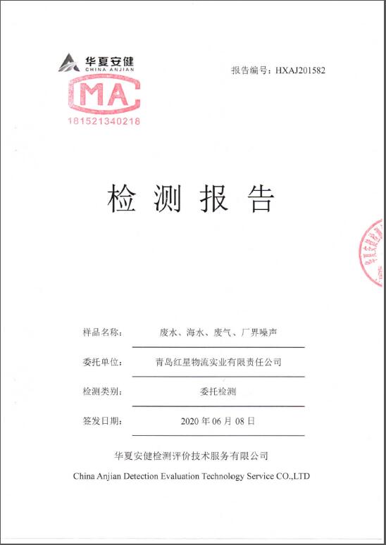 青島紅星物流實業有限責任公司廢水、海水、廢氣、廠界噪音檢測報告公示